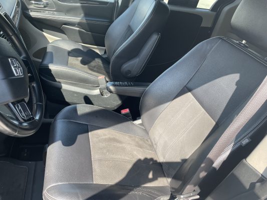 Front wheel drive; 3.6L V6 engine; 6-Speed automatic transmission; 119” wheelbase; 16” wheel covers; Full instrumentation with tachometer; 4-wheel antilock braking system; Power windows; 2nd row power windows; 3rd row power rear vent windows; Power door locks; Power heated exterior mirrors; Tilt/telescoping steering column; Cruise control; Steering-wheel mounted audio controls; Remote keyless entry; AM-FM radio with CD/MP3 player; ParkView rear backup camera; Front and rear air conditioning and heating, with 3-zone temperature control; Dual front air bags; Supplemental side-curtain air bags; Intermittent wipers; Rear window defroster; Rear windshield wiper; Dual sun visors with mirrors; Reclining front bucket seats, with 8-way power driver’s seat; 3-person rear bench seat; Driver and passenger side power sliding doors; Manual liftgate; Dual glove boxes; Dual cup-holders; Tinted sunscreen glass; Vinyl upholstery