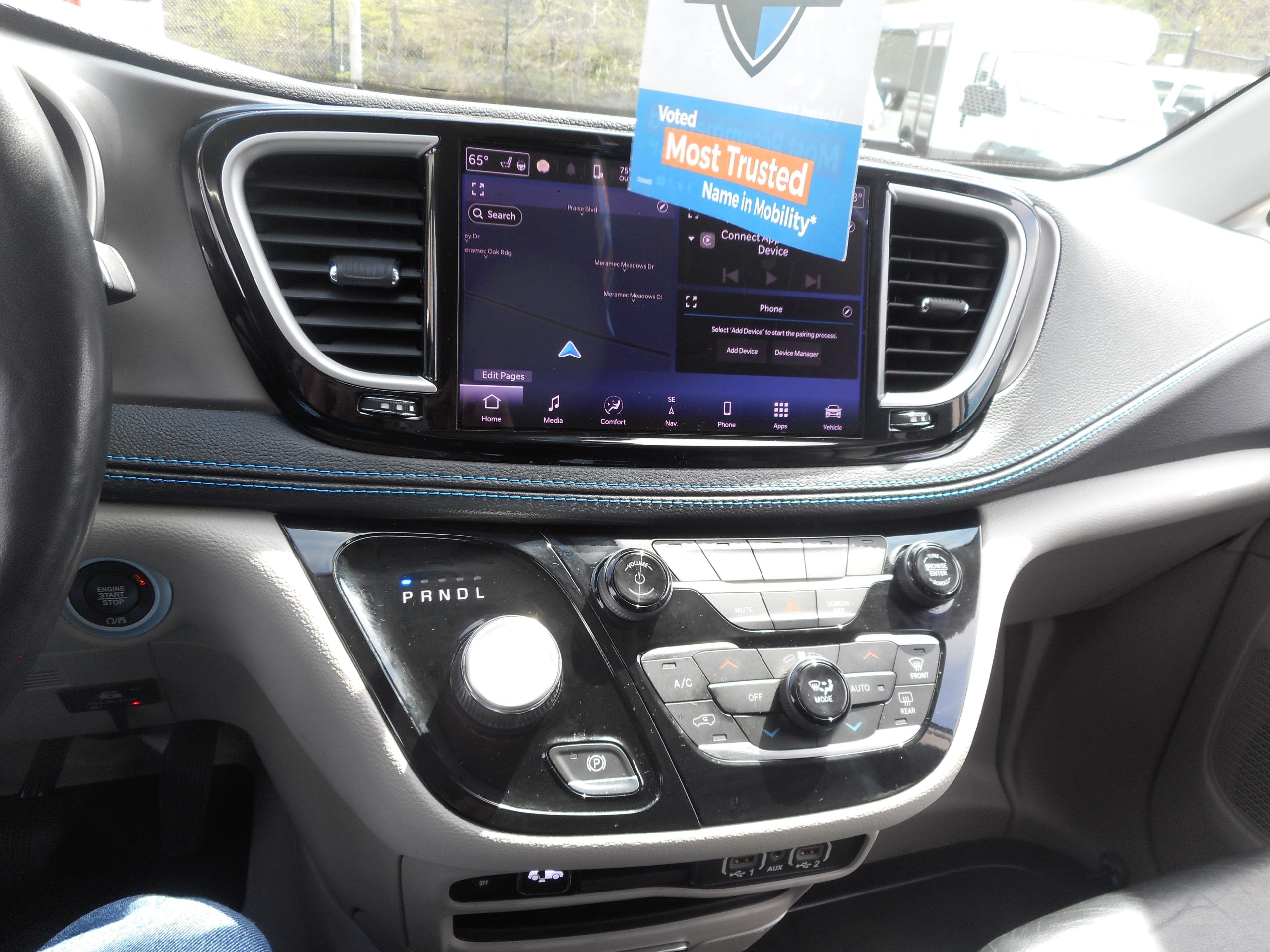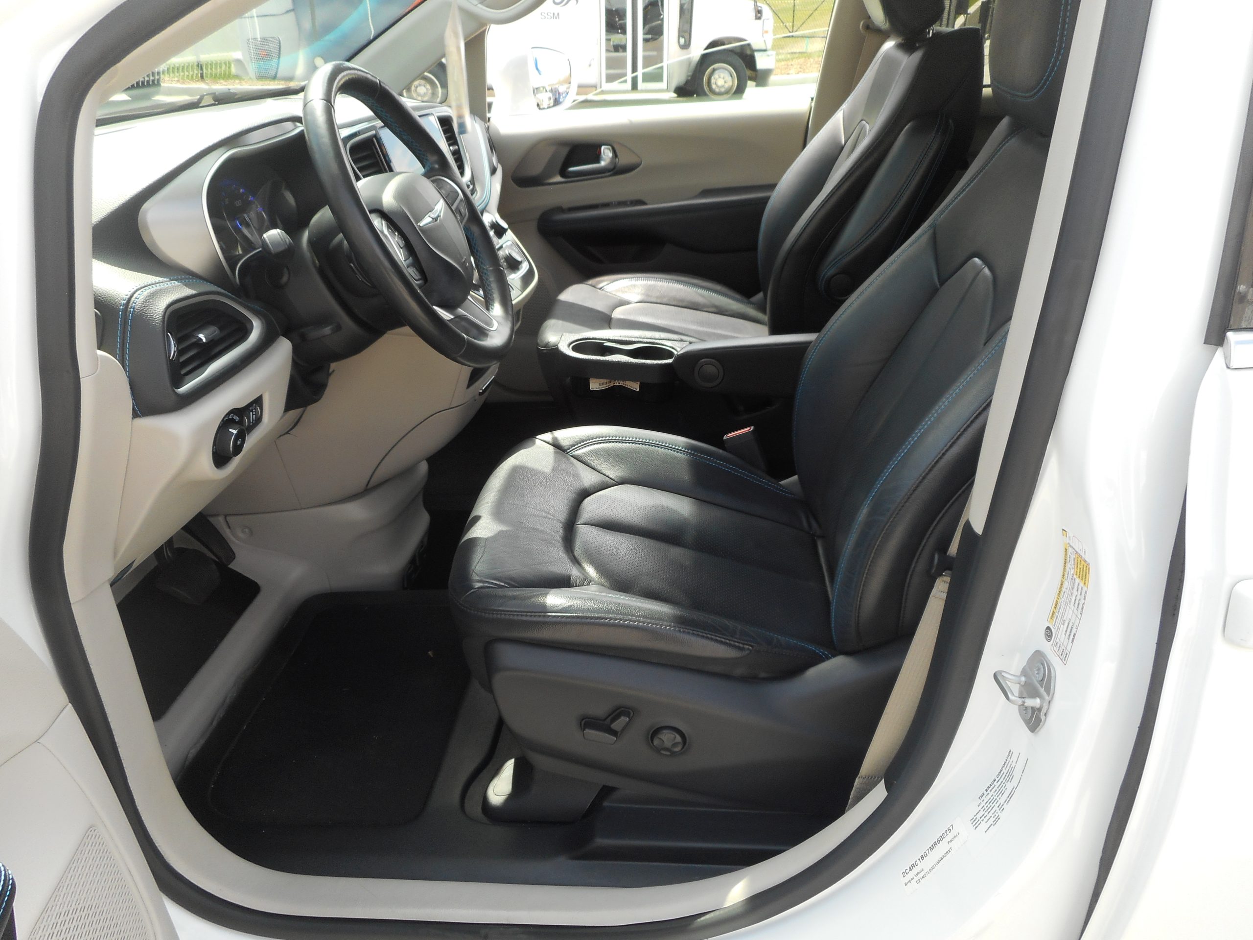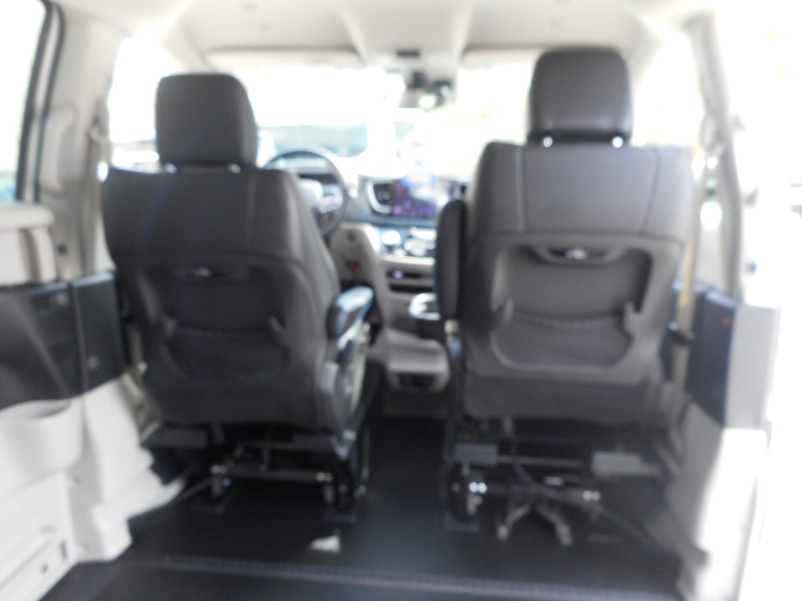 Front wheel drive; 3.6L V6 engine; 9-Speed automatic transmission; 121” wheelbase; 17” aluminum wheels; Full instrumentation with tachometer;  4-wheel antilock braking system; Power windows; 2nd row power windows;  Power door locks; Heated power remote mirrors; Fog lights; Tilt/telescoping steering wheel; Heated, Leather-wrapped steering wheel; Steering wheel-mounted audio controls; Remote start; Remote keyless entry; AM-FM radio with USB & AUX inputs for digital media devices; ParkView rear backup camera; UConnect 5 with 10.1” display; Integrated voice command with Bluetooth; Apple Carplay; Sirius Satellite radio option; Remote Start; Push-button start; Front and rear air conditioning and heating, with 3-zone temperature control; Dual front air bags; Supplemental side-curtain air bags; Adaptive Cruise Control; Pedestrian  Emergency Braking; Blind spot and rear cross path detection; Lane Departure Warning Plus; Rain sensitive intermittent wipers; Rear window defroster; Rear windshield wiper; Dual sun visors with illuminated mirrors; Overhead rail system; Driver’s & passenger side chrome bumper strips; Universal garage door opener; Reclining front bucket seats; Leather upholstery; 8-way power driver’s seat; Heated front seats;  3-person rear bench seat; Driver and passenger side power sliding doors; Power liftgate; Tinted sunscreen glass; 2nd & 3rd row window shades