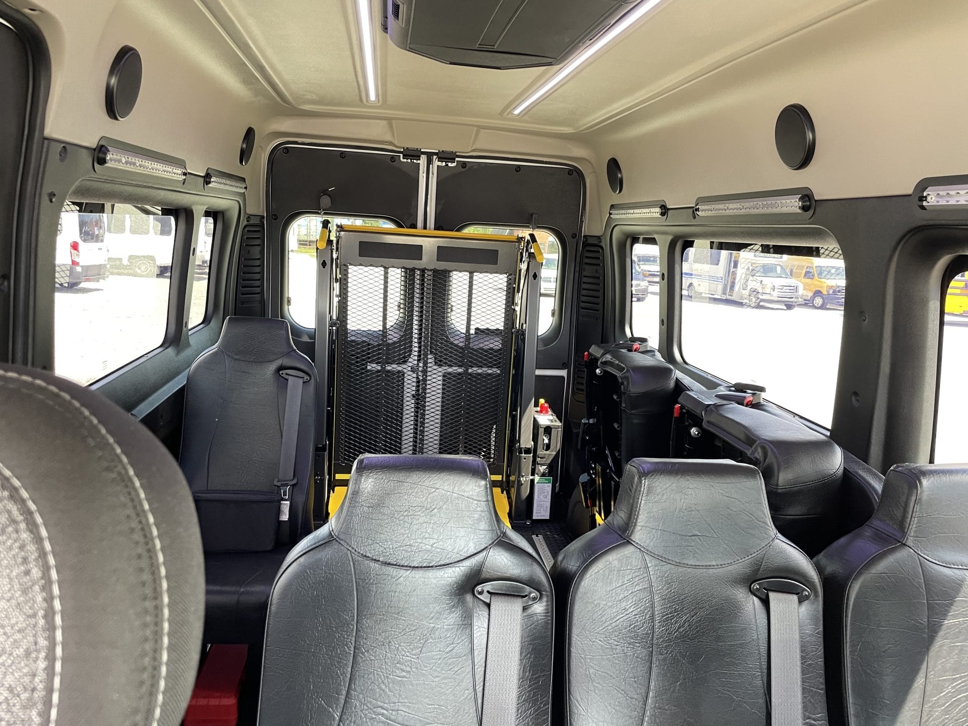 Braun Century NL919FIB-2 fully automatic wheelchair lift with a 34” X 51” platform and manual back up system mounted inside rear cargo doors
