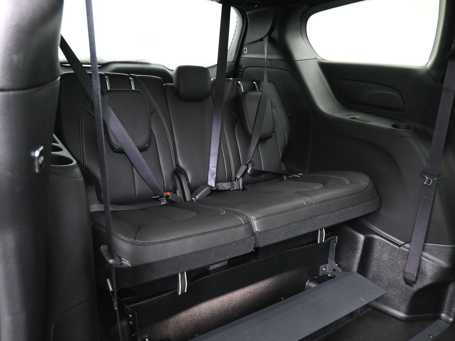 Front wheel drive; 3.6L V6 engine; 9-Speed automatic transmission; 121” wheelbase; 17” aluminum wheels; Tire Service Kit; Full instrumentation with tachometer; 4-wheel antilock braking system; Power windows; 2nd row power windows; Power door locks; Heated power remote mirrors; Fog lights; Tilt/telescoping steering wheel; Heated, Leather-wrapped steering wheel; Steering wheel-mounted audio controls; Remote Start; Push-button start; Remote keyless entry; AM-FM radio with USB & AUX inputs for digital media devices; ParkView rear backup camera; UConnect 5 with 10.1” display; Apple Carplay; Google Android Auto; Handsfree Phone & Audio; Sirius Satellite radio option; Front and rear air conditioning and heating, with 3-zone temperature control; Dual front air bags; Supplemental side-curtain air bags; Adaptive Cruise Control; Pedestrian Emergency Braking; Blind spot and rear cross path detection; Full Speed Forward Collision Warning Plus; Lane Departure Warning Plus; Rain sensitive intermittent wipers; Rear window defroster; Rear windshield wiper; Dual sun visors with illuminated mirrors; Reclining front bucket seats; Leather upholstery; 8-way power driver’s seat with memory feature; Heated front seats; 3-person rear bench seat; Driver and passenger side power sliding doors; Power liftgate; Tinted sunscreen glass; 2nd row window shades; Safety sphere package: 360 surround-view camera; ParkSense Front & Rear Park Assist with stop; Parallel and Perpendicular Park Assist with Stop.
