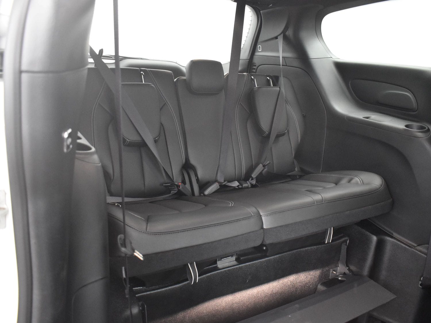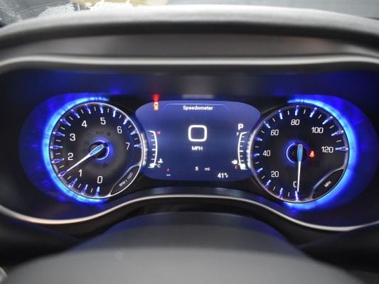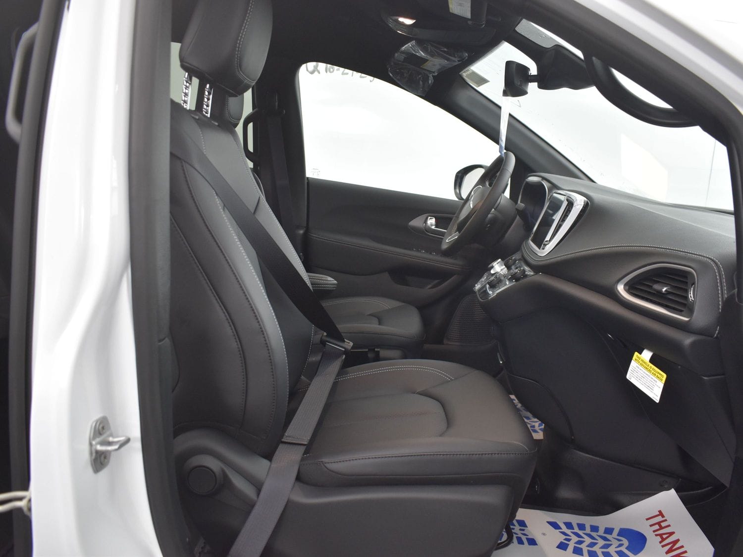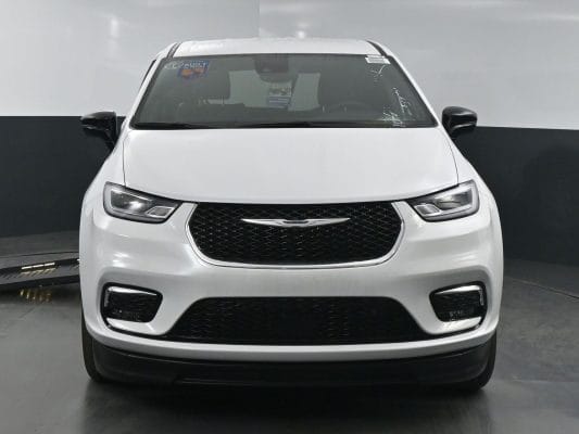 Front wheel drive; 3.6L V6 engine; 9-Speed automatic transmission; 121” wheelbase; 17” aluminum wheels; Tire Service Kit; Full instrumentation with tachometer;  4-wheel antilock braking system; Power windows; 2nd row power windows;  Power door locks; Heated power remote mirrors; Fog lights; Tilt/telescoping steering wheel; Heated, Leather-wrapped steering wheel; Steering wheel-mounted audio controls; Remote Start; Push-button start;  Remote keyless entry; AM-FM radio with USB & AUX inputs for digital media devices; ParkView rear backup camera; UConnect 5 with 10.1” display; Apple Carplay; Google Android Auto; Handsfree Phone & Audio; Sirius Satellite radio option; Front and rear air conditioning and heating, with 3-zone temperature control; Dual front air bags; Supplemental side-curtain air bags; Adaptive Cruise Control; Pedestrian  Emergency Braking; Blind spot and rear cross path detection; Full Speed Forward Collision Warning Plus; Lane Departure Warning Plus; Rain sensitive intermittent wipers; Rear window defroster; Rear windshield wiper; Dual sun visors with illuminated mirrors; Reclining front bucket seats; Leather upholstery; 8-way power driver’s seat with memory feature; Heated front seats;  3-person rear bench seat; Driver and passenger side power sliding doors; Power liftgate; Tinted sunscreen glass; 2nd row window shades; Safety sphere package: 360 surround-view camera; ParkSense Front & Rear Park Assist with stop; Parallel and Perpendicular Park Assist with Stop.