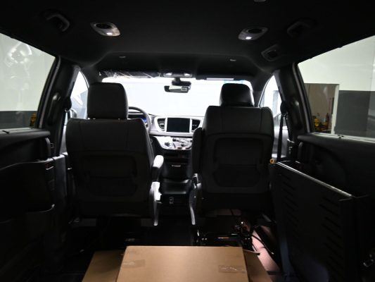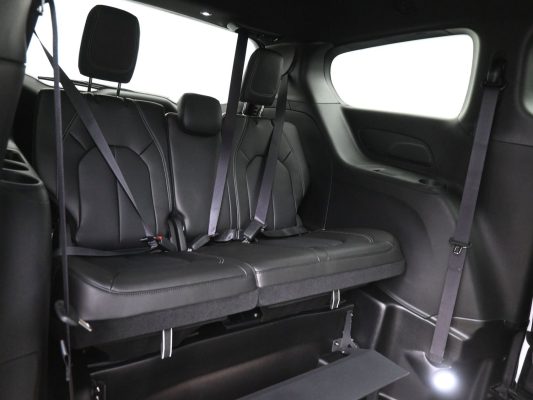 Front wheel drive; 3.6L V6 engine; 9-Speed automatic transmission; 121” wheelbase; 17” aluminum wheels; Tire Service Kit; Full instrumentation with tachometer; 4-wheel antilock braking system; Power windows; 2nd row power windows; Power door locks; Heated power remote mirrors; Fog lights; Tilt/telescoping steering wheel; Heated steering wheel; Steering wheel-mounted audio controls; Remote start; Remote keyless entry; AM-FM radio with USB & AUX inputs for digital media devices; ParkView rear backup camera; UConnect 5 with 10.1” display; Google Android Auto; Ap[ple Car Play; Integrated voice command with Bluetooth; Sirius Satellite radio option; Remote Start; Push-button start; Front and rear air conditioning and heating, with 3-zone temperature control; Dual front air bags; Supplemental side-curtain air bags; Adaptive Cruise Control; Pedestrian Emergency Braking; Blind spot and rear cross path detection; Full Speed Forward Collision Warning Plus; Lane Departure Warning Plus; Rain sensitive intermittent wipers; Rear window defroster; Rear windshield wiper; Dual sun visors with illuminated mirrors; Reclining front bucket seats; Leather upholstery; 8-way power driver’s seat; Heated front seats; 3-person rear bench seat; Driver and passenger side power sliding doors; Power liftgate; Tinted sunscreen glass.