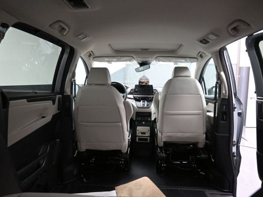 Front wheel drive; 3.5L VTEC V6 engine; 10-Speed automatic transmission; 18” Alloy wheels; Full instrumentation with tachometer; 4-wheel antilock braking system; Power front windows; 2nd row power windows; Power door locks; Heated power remote mirrors w/ Turn indicators; LED Headlights w/ Auto High Beam; Fog lights; Tilt/telescoping steering wheel; Cruise control; Leather-wrapped steering wheel; Steering wheel-mounted audio controls; Paddle shifters; Remote keyless entry; AM/FM radio with USB & AUX inputs for digital media devices; Apple Car Play/Android Auto; 9” touchscreen with Multi-view backup camera; HomeLink System; Sirius Satellite radio option; Remote Start; Push-button start; Front and rear air conditioning and heating, with 3-zone temperature control; Dual front air bags; Supplemental side-curtain air bags; Intelligent Traction Control; Adaptive Cruise Control; Collision Mitigation Braking System; Road Departure Mitigation; Lane Keeping Assist; Blind Spot w/ Cross Traffic Monitor; Rear window defroster; Rear windshield wiper; Power Moonroof w/ tilt feature; Dual sun visors with illuminated mirrors; Overhead rail system; Driver’s & passenger side chrome bumper strips; Reclining front bucket seats; Leather upholstery; 8-way power driver’s seat/ 4-way power passenger seat, plus 4-way power lumbar; Heated front seats; 3-person rear bench seat; Driver and passenger side power sliding doors; Power liftgate; Tinted sunscreen glass; 2nd row window shades.